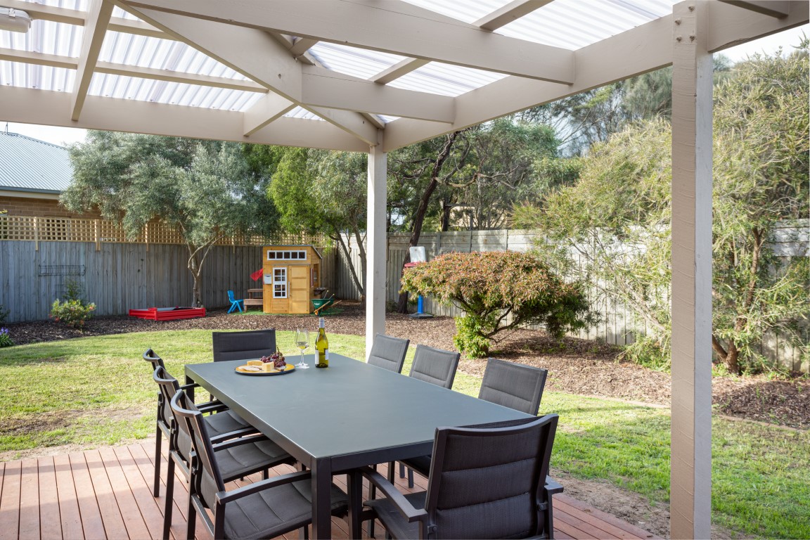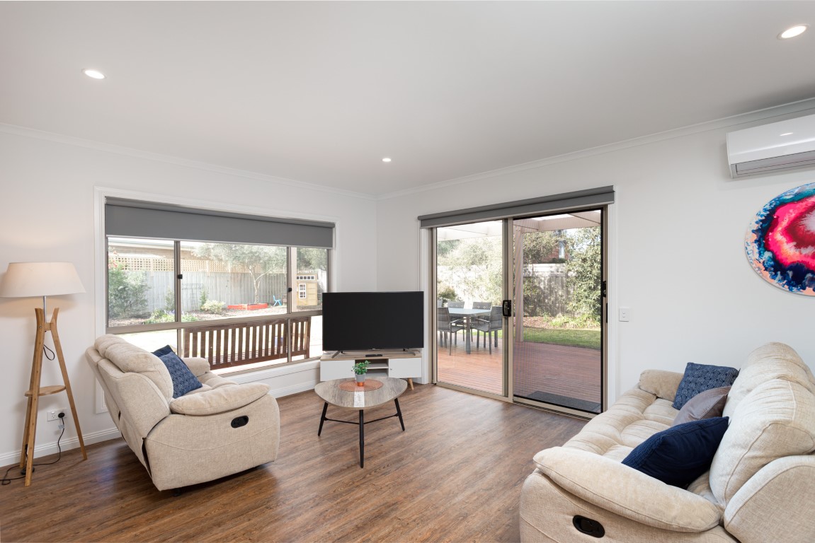 Situated in the picturesque and thriving beachside town of Torquay, Victoria, the surfing capital of Australia and the start of the famous Great Ocean Road. This stylish home has been recently renovated to sleep 10-12 in 4 bedrooms with an optional front lounge conversion to a 5th bedroom. It boasts open plan living, high-end kitchen appliances, large outdoor covered deck leading to the sun-soaked garden, split system heating and cooling, Wi-Fi, and 50” smart TV.