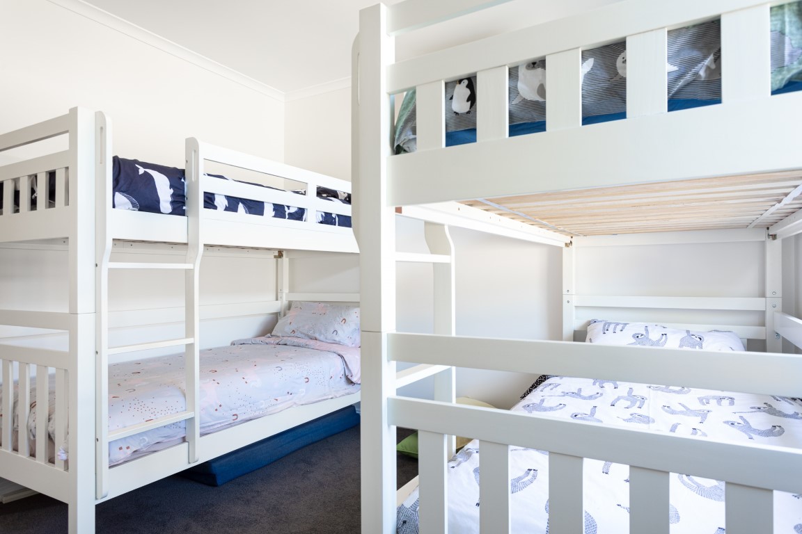 Saltwater Beach House Torquay Accessible Accommodation caters for high-level accessibility needs and sleeps up to 12 guests. An Occupational Therapist specialising in home modifications led the design of the renovation of this accessible beach house with discreet accessible features. Catering for high accessibility needs, the property is wheelchair accessible throughout with widened doorways, a modern level entry ensuite bathroom, designer grab rails, and accessible appliances. A range of disability equipment is available including an in-built recessed single-track ceiling hoist and electric single adjustable bed.
