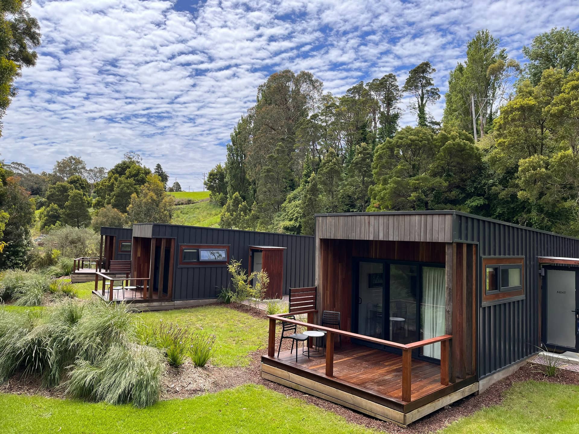 Surrounded by beautiful native bushland our three unique tiny homes (Raspberry, Mint and Caramel) are nestled in the heart of Timboon overlooking Power Creek, the perfect backdrop to walk, explore and refresh.
