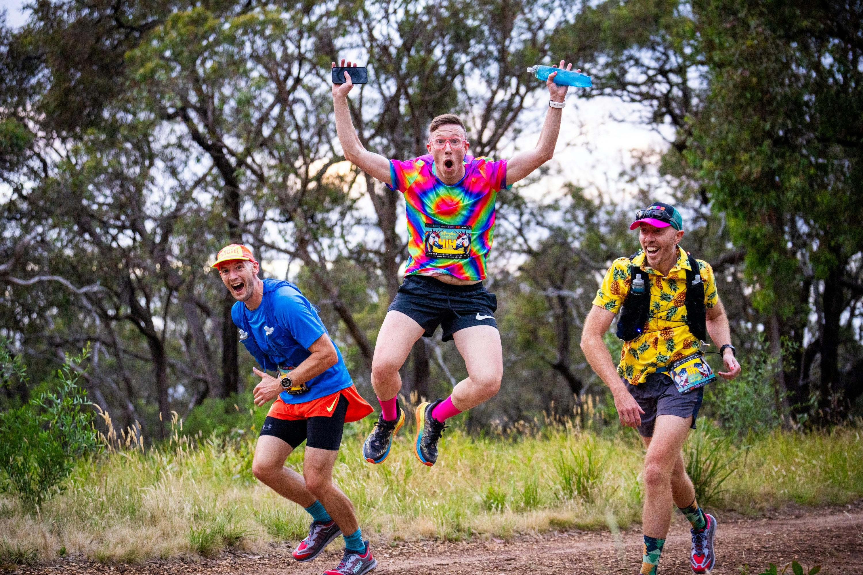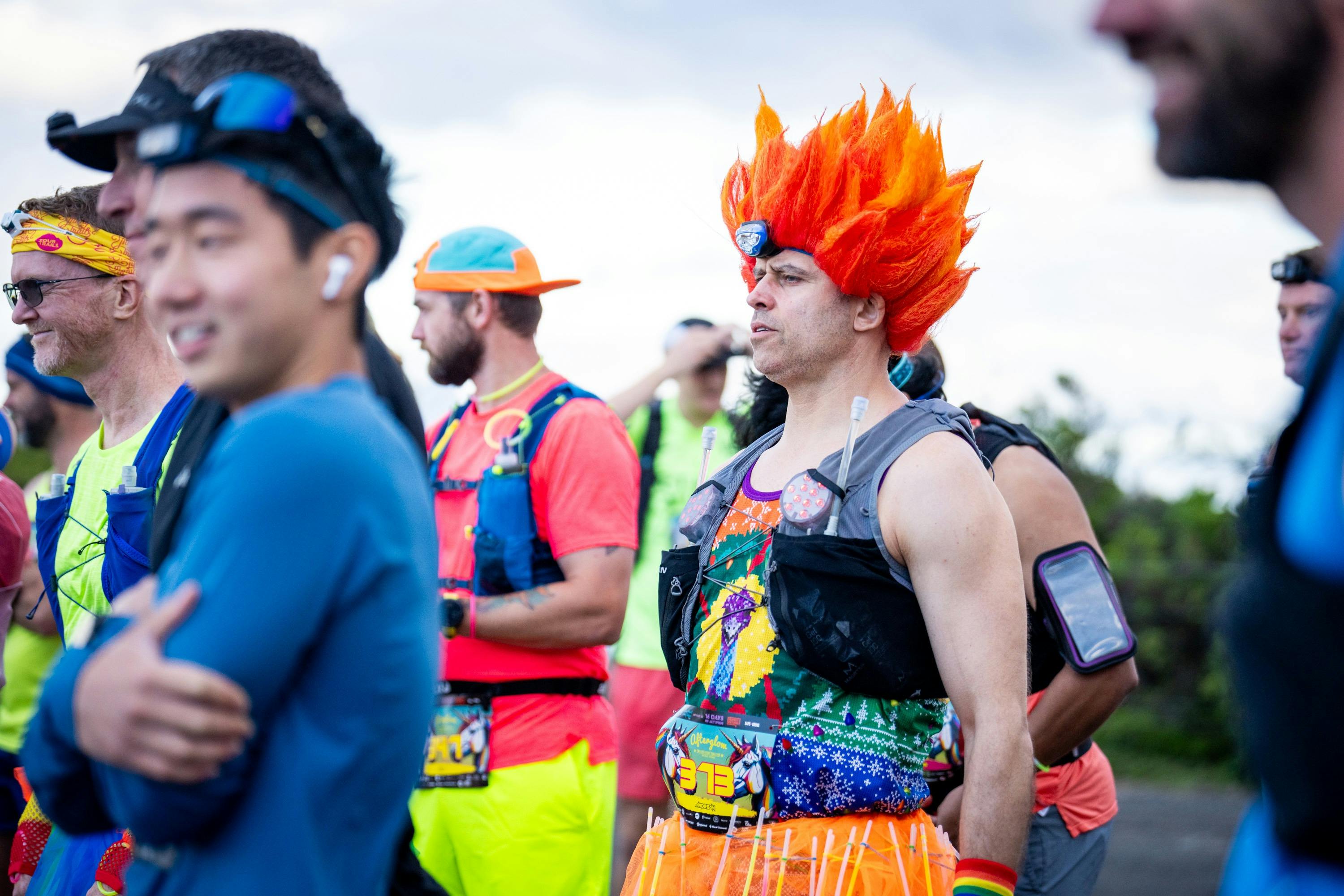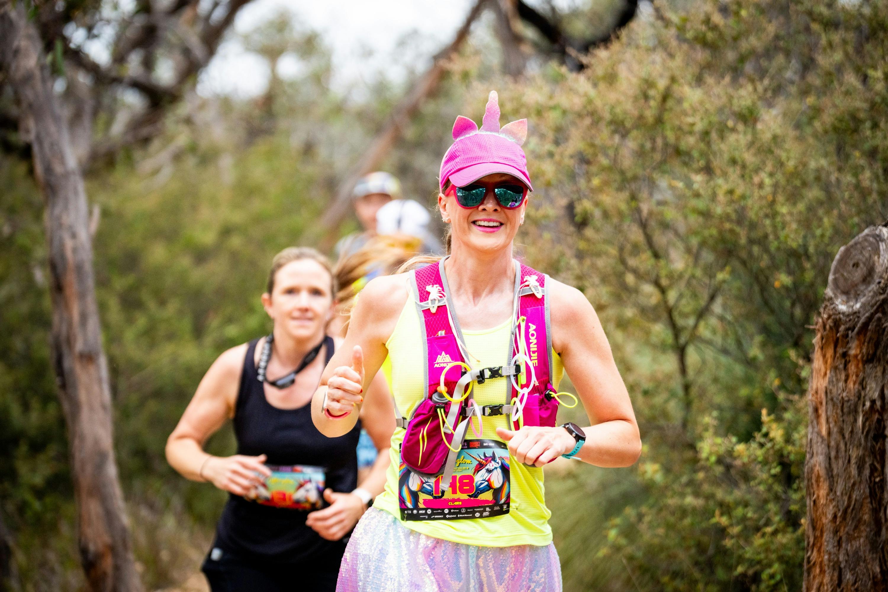 The afterglow night trail run is potentially the most fabulously fun trail running event on the planet promising glowing unicorns, bad eighties fashion, men in tights and tutus, lots of fluorescent, an 80s DJ jamming at the finish line, fire twirlers, saxophonist and more glitter and glam than you can poke a wand at.