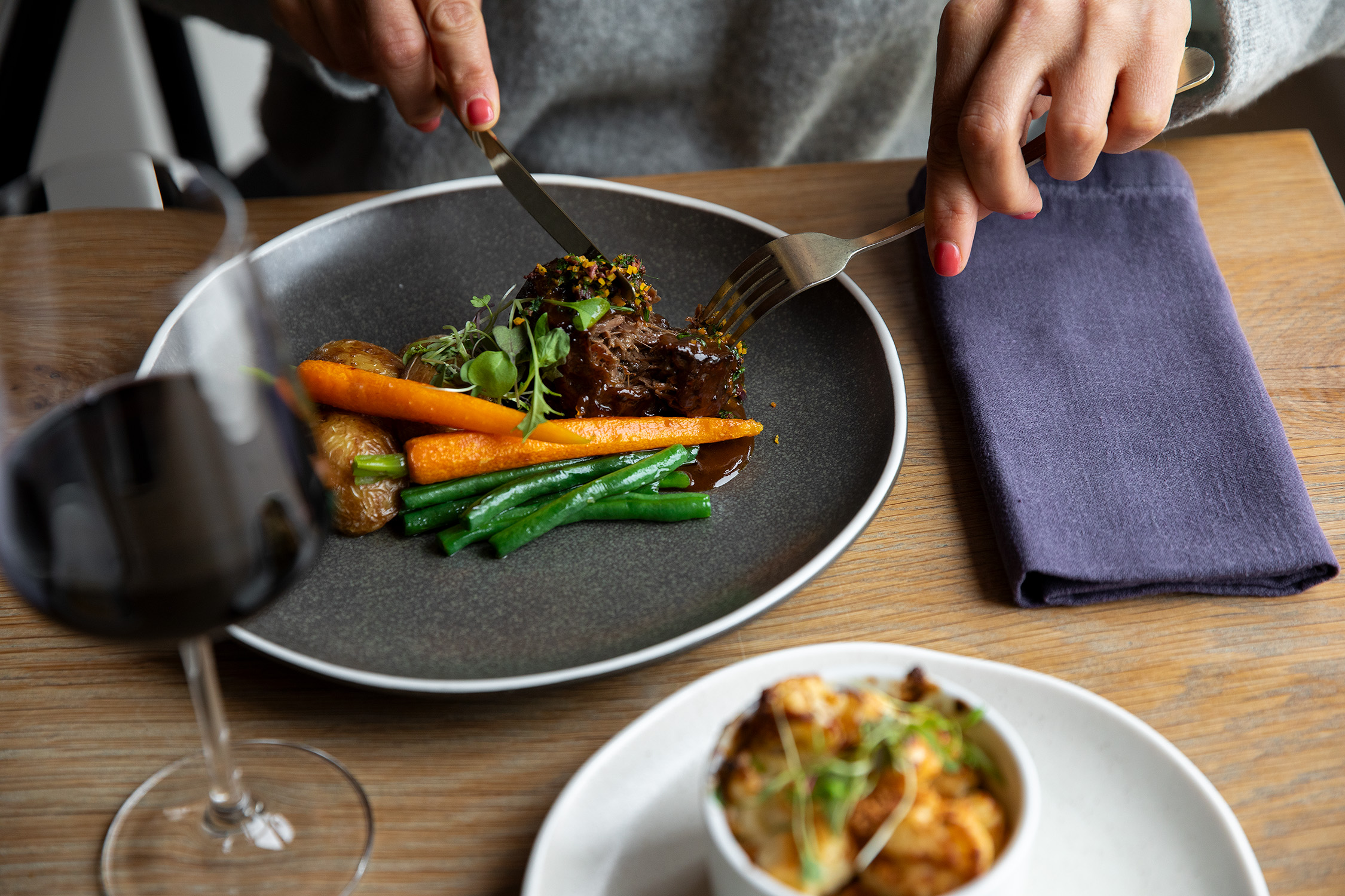 A carefully curated menu offers a variety of modern Australian dishes, featuring locally sourced produce from the Great Ocean Road and Surf Coast regions.