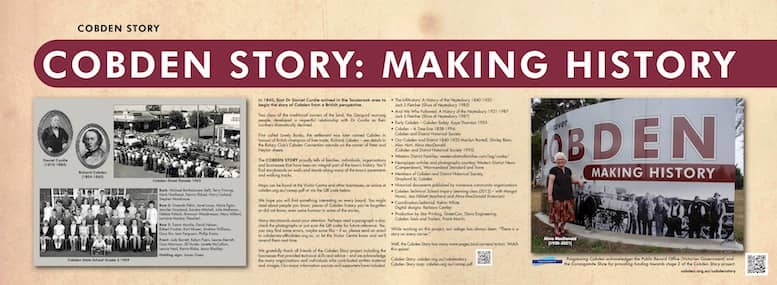 Call in to the Cobden Visitor Centre to pick up a brochure and find out about the remaining storyboards that are in the making!